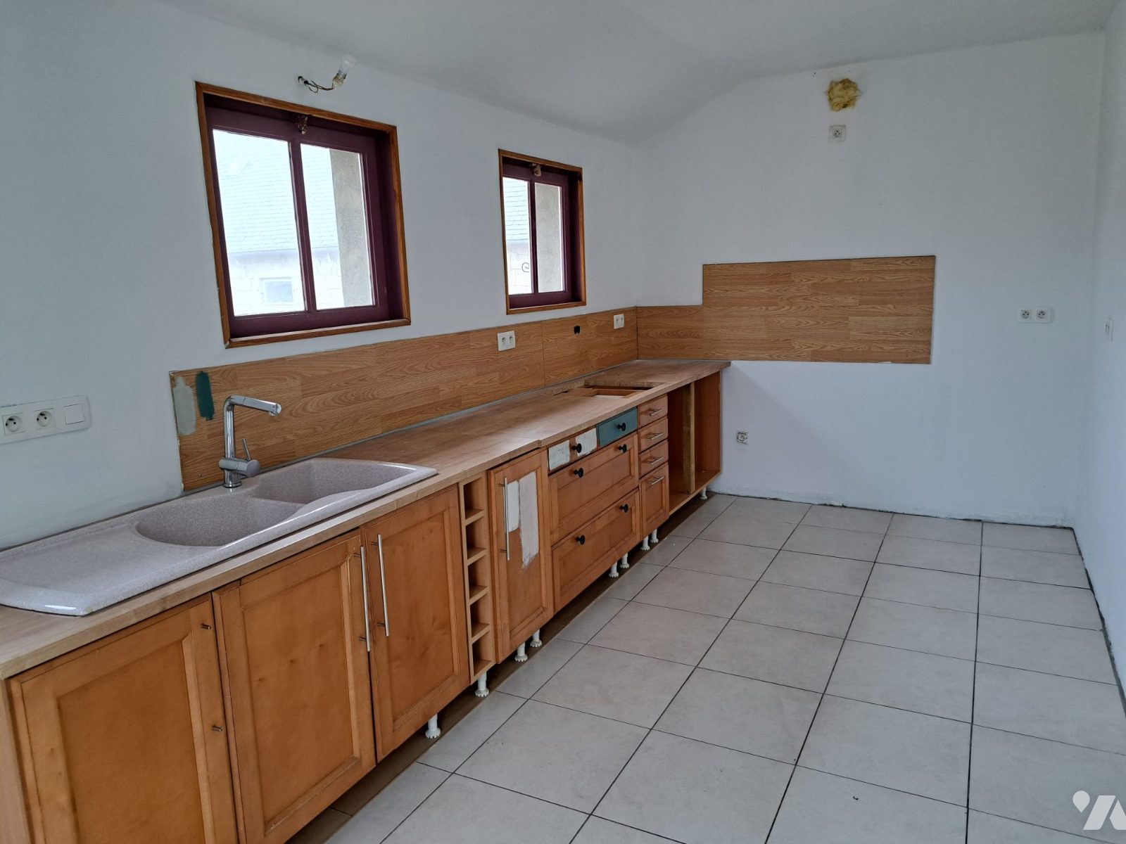 Appentis en parpaings sous ardoises à l'arrière dans lequel cuisine ;