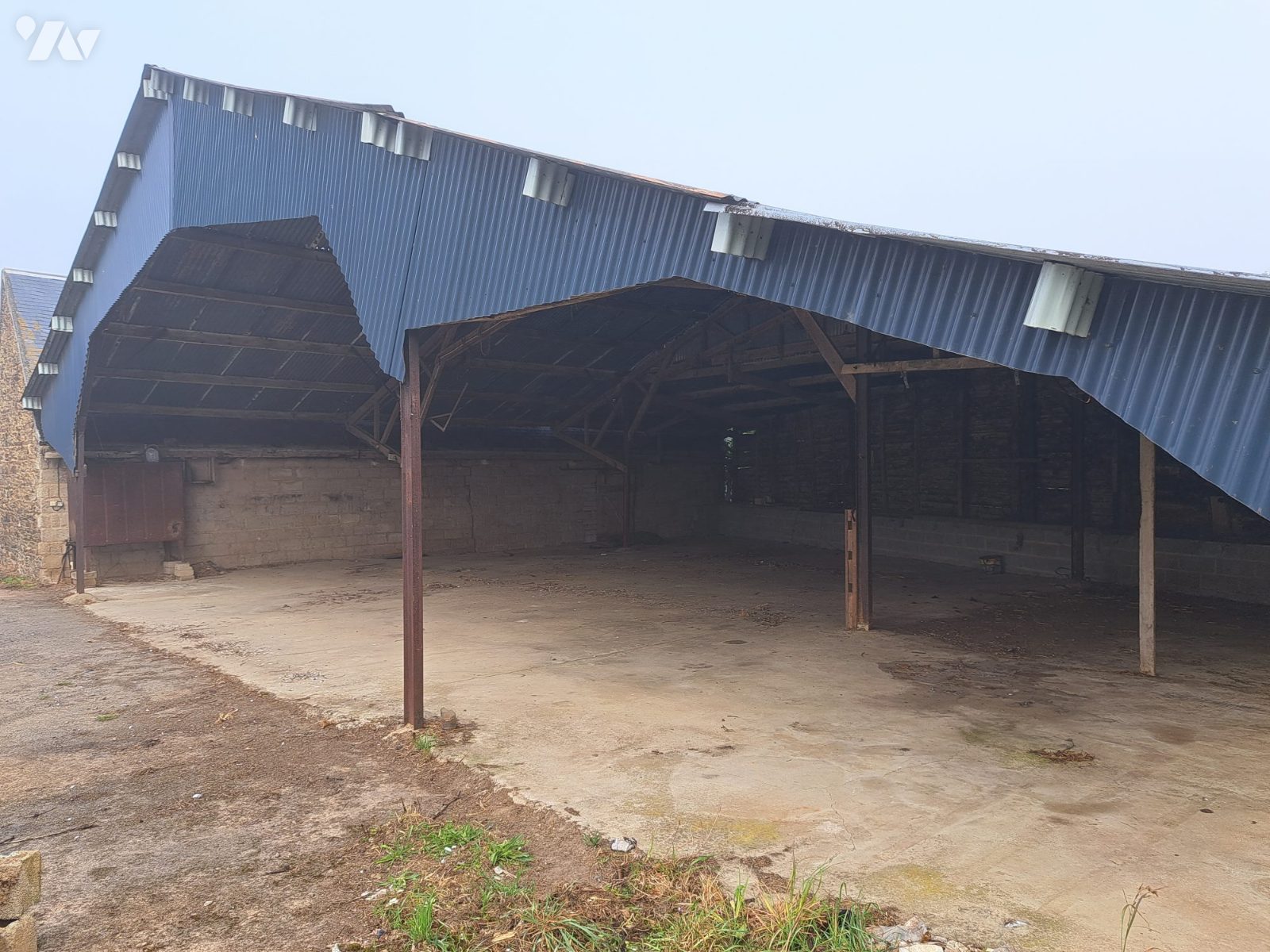 2- Au Nord, hangar en charpente bois, couverture en tôles ;