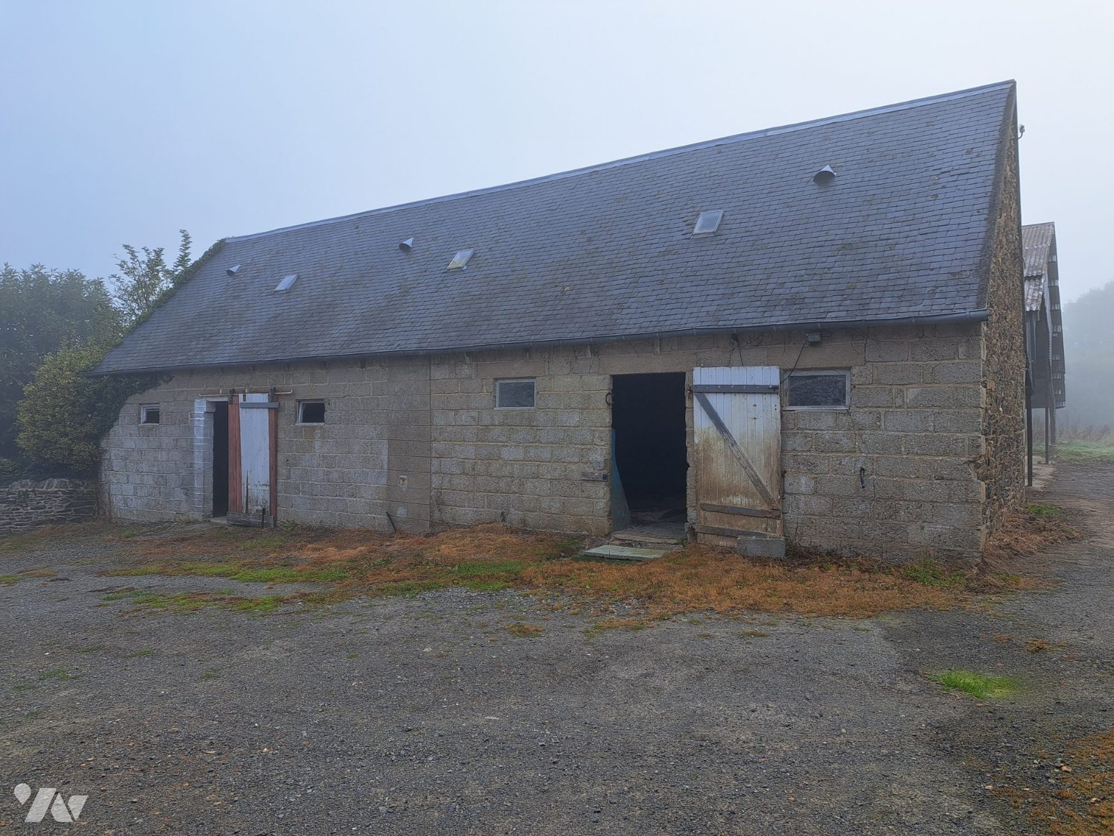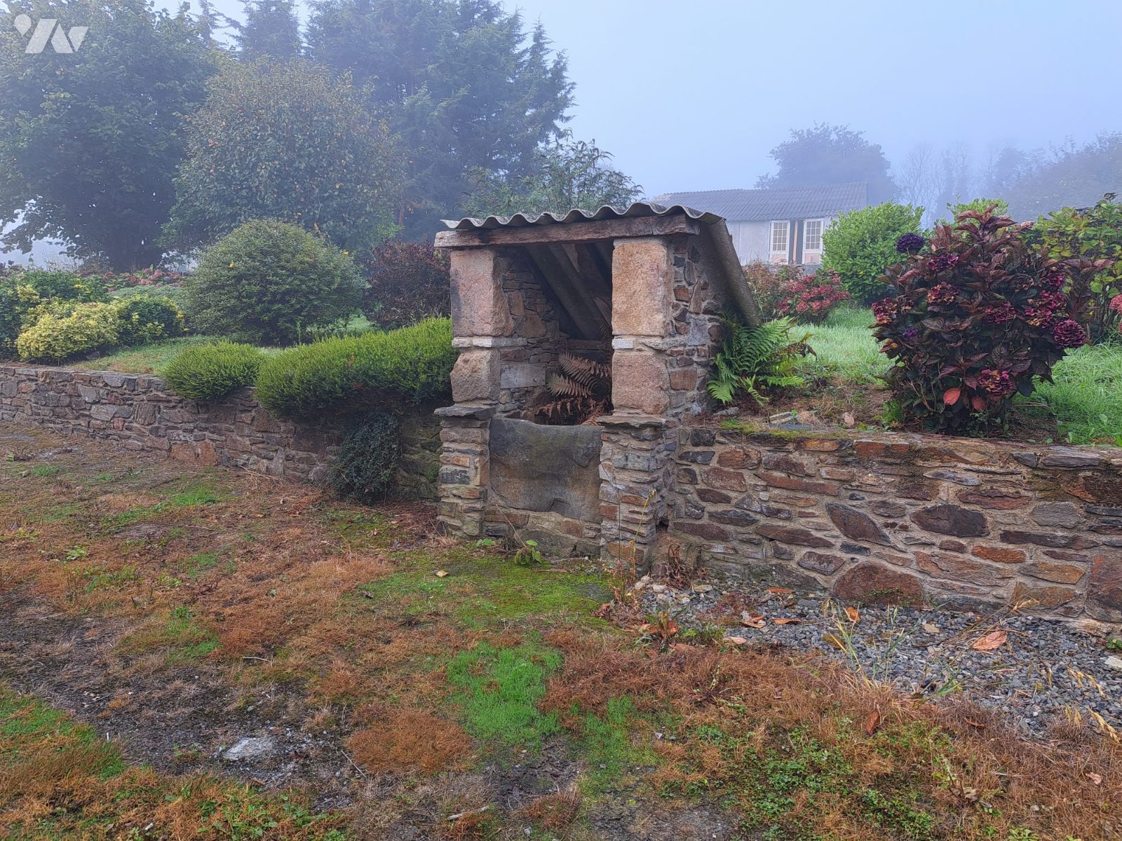 4- Remise en pierres sous tuiles contre laquelle un appentis en parpaings ;
