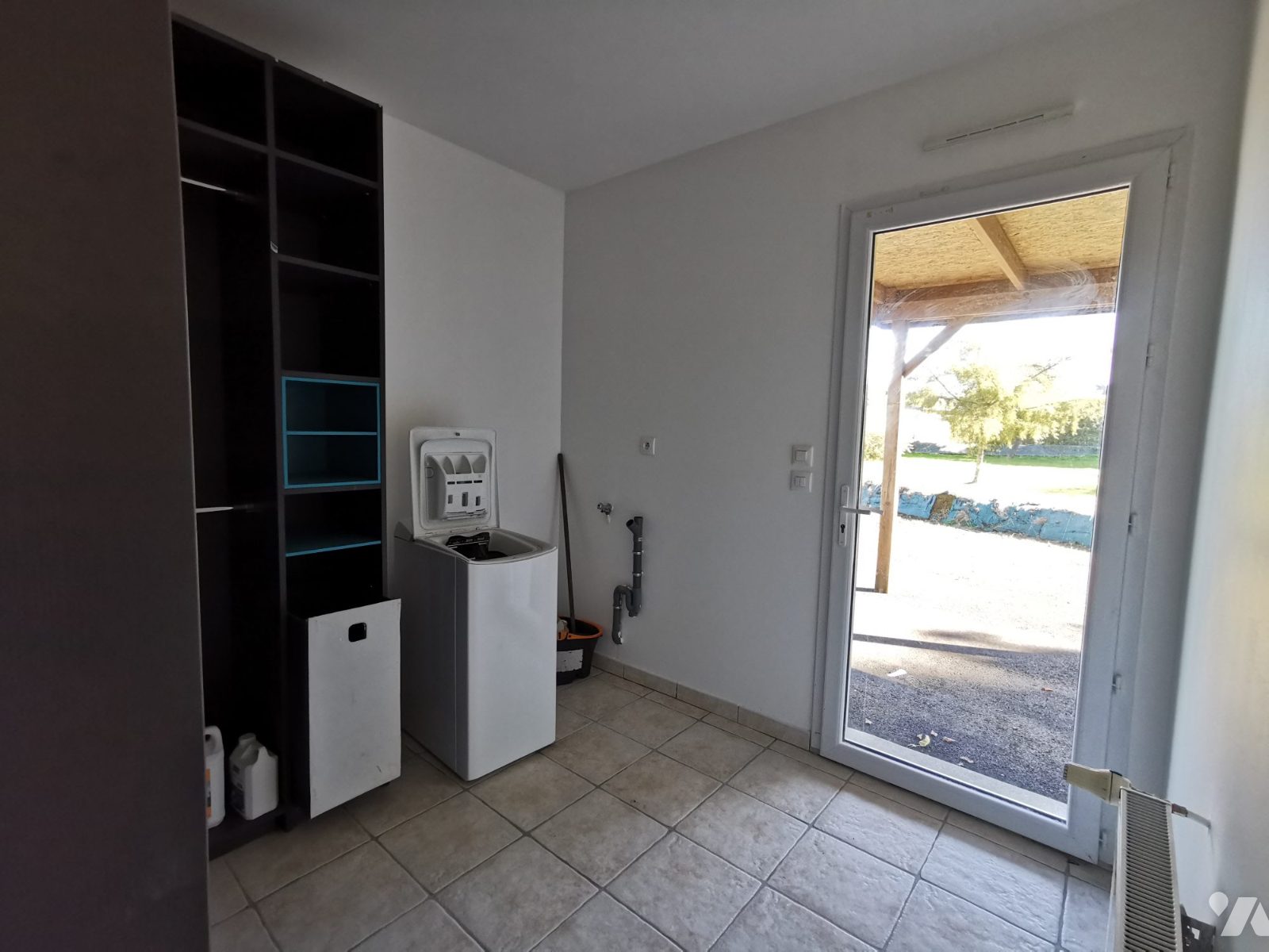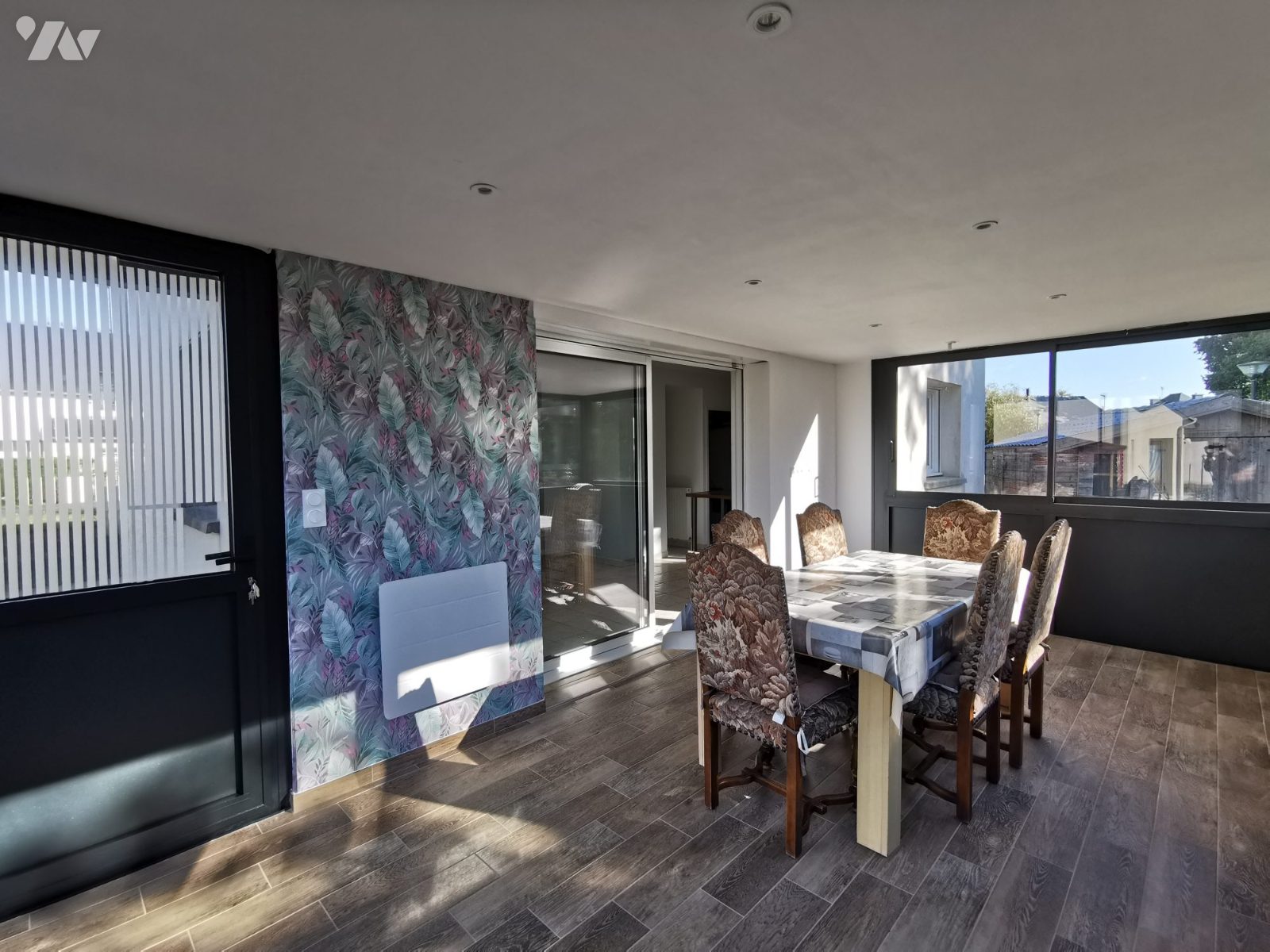 Le rez-de-chaussée offre : un séjour ouvert sur la cuisine aménagée équipée et sur la véranda de 19m2. Également une buanderie donnant accès au carport, une chaufferie et un WC.